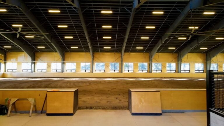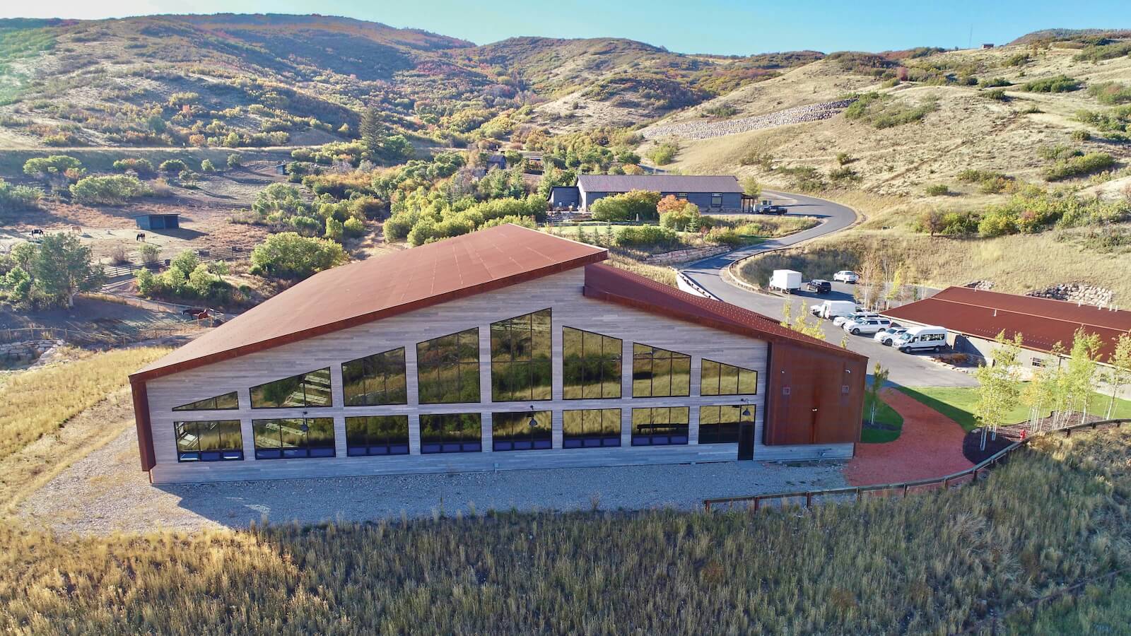 Engineered to meet municipal operational demands, this 15,444 sq. ft. clear-span facility for Heber Light & Power in Heber, Utah includes 18 garage-style doors, a sloped roof, and attached office space to support maintenance and storage functions.